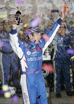 In a dramatic reversal, Kyle Busch, who finished 10th, wrested the series points lead from Carl Edwards, who came home 33rd. Busch leads Edwards by 47 points as the series heads for Talladega on April 25.