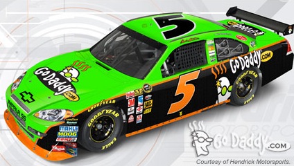 CONCORD, N.C. (Sept. 18, 2009) – GoDaddy.com has signed an agreement to be the primary sponsor of Hendrick Motorsports’ No. 5 Chevrolets in the NASCAR Sprint Cup Series. The world’s leading registrar of Internet domain names will adorn the hood for 20 races annually, including the season-opening Daytona 500, beginning in 2010. Terms will remain private.