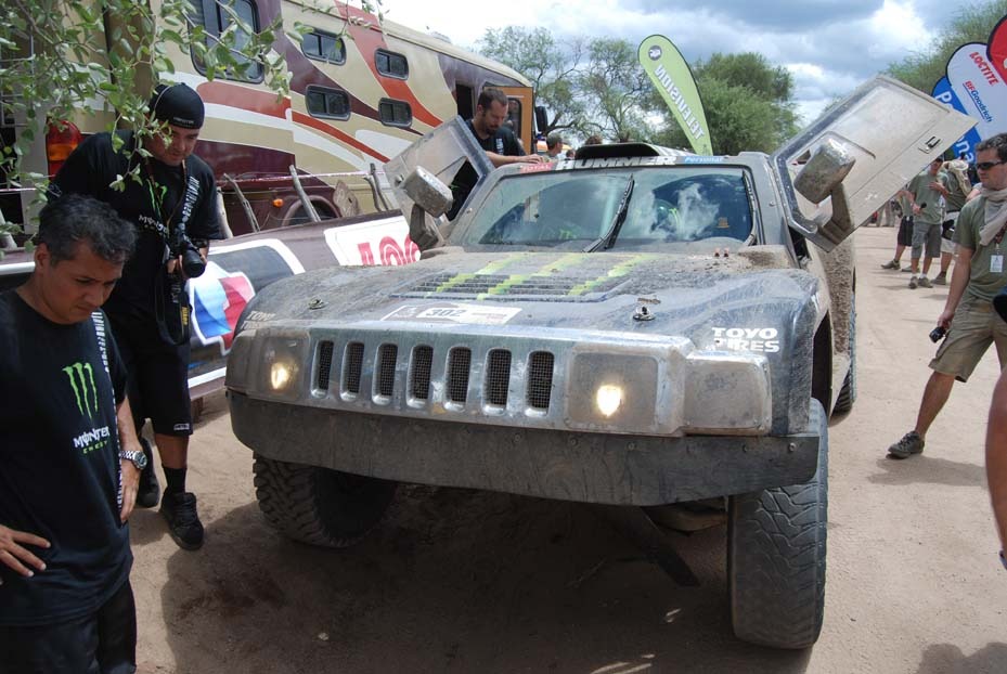 Fiambala, Argentina (January 4, 2010) – Unfortunate circumstances plagued Team HUMMER this afternoon in the dune sections of Stage 3. The team had first thought that the these set of dunes would be a good stage for the HUMMERs but due to a smaller restrictor cutting the horsepower down, the HUMMERs couldn’t carry the momentum needed to get through the heavy sand that was featured during Stage 3. Robby Gordon said his HUMMER won’t run the dunes in 2nd gear and for that reason he got stuck and lost valuable time to the leaders. Robby Gordon talked about his performance during Stage 3, “I feel we are at a major disadvantage when it comes to restrictors. My top speed is about 165mph and the Volkswagens’ are going 190mph. Plus my Monster Energy / Toyo Tires HUMMER needs to carry extra weight because of the fuel mileage we get. The sand dunes in this stage needed the car to have forward momentum to get through them. I would run up and try to come down and get stuck. For tomorrow we’ll move on and drive again.”