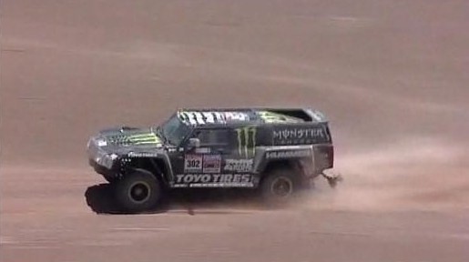 Antofagasta, Chile (January 6, 2010) –Team HUMMER carried the momentum from yesterday’s stage win into today’s performance. Robby Gordon finished fourth, just 4 minutes and 48 seconds behind the winner Mark Miller. Gordon jumps to fourth place overall, only trailing Carlos Sainz by 59 minutes and 55 seconds. As Gordon suspected, most competitors struggled during Stage 5 from Copiapo to Antofagasta, one of the longest stages during the 2010 Dakar Rally. Despite the tough terrain and length of the stage, Gordon proved once again that his Monster Energy / Toyo Tires HUMMER is reliable and fast across the Chilean desert.