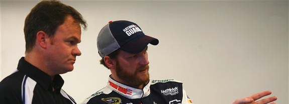 Dale Earnhardt Jr. along with Hendrick Motorsports teammates Mark Martin and Jeff Gordon top the first Daytona 500 practice on Friday.
