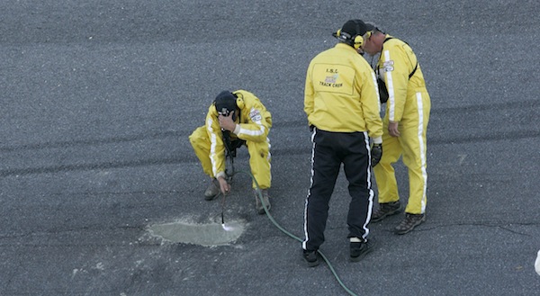 The damaged area of the track is along the 31-degrees of banking in Turn 2, making the utilization of concrete the best solution. The repairs will begin today and take about two days to complete followed by several days of cure time.