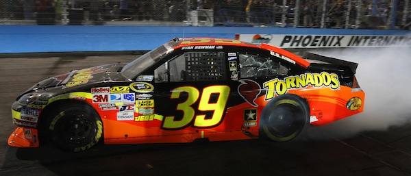 After two circuits under green at the flat one-mile track, Newman crossed the finish line .130 seconds ahead of Gordon to win his 14th NASCAR Sprint Cup race and his first since the 2008 Daytona 500—a 77-race drought.