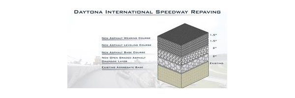 Lane Construction, which repaved other ISC race tracks including Talladega Superspeedway, Homestead-Miami Speedway, Richmond International Raceway and Darlington Raceway, has been contracted to repave Daytona International Speedway.
