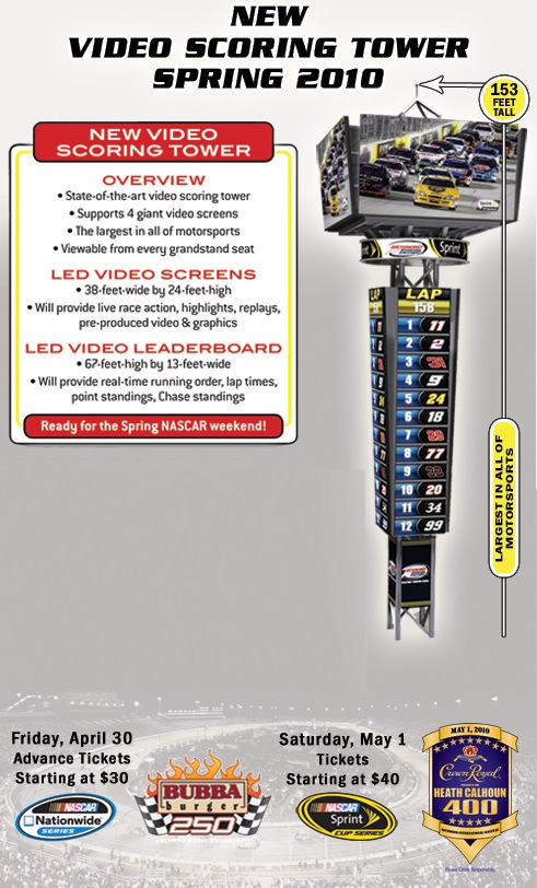 One of the first things everyone will notice at Richmond International Raceway this weekend is the brand new state-of-the-art video scoring tower, stretching 153-feet high above the infield. The video scoring tower is the tallest in motorsports and features more LED square footage than any other track scoreboard.