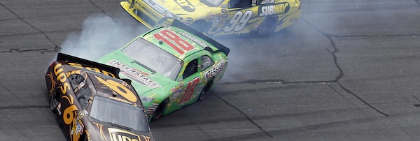 In the evening practice Carl Edwards got into the back of Joey Logano as the 20 car was coming into the pits. No significant damage to either car. Later in the session the #18 of Kyle Busch tapped the back of his teammate Denny Hamlin in the #11 car, who then wrecked the #83 of Reed Sorenson and Tony Stewart. Going to backup cars are the 14, 83, and 11. Kyle Busch took the blame for this one and apologized.