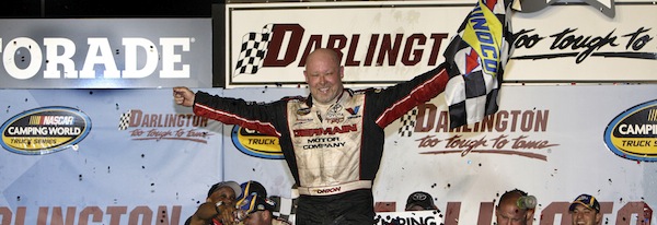 The series leader by 174 points coming into the race, Bodine cruised to his second straight win and third this season in the first truck race at Darlington since 2004.