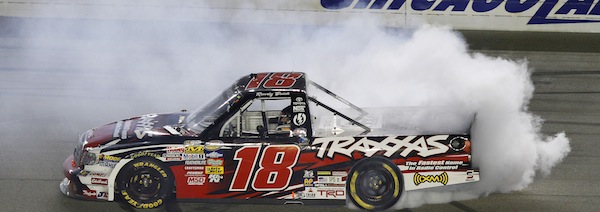 Busch swept all three NASCAR national series races at Bristol Motor Speedway last weekend and continued his winning ways at Chicagoland. He led three times for 121 laps for his fourth truck series win in nine starts in 2010.
