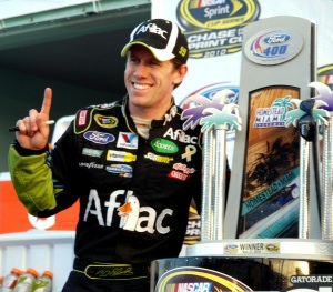 The top five drivers in the NASCAR Sprint Cup Series this week—Carl Edwards, Jimmie Johnson, Kevin Harvick, Aric Almirola and A.J. Allmendinger—ran to the front to finish the 1.5-mile oval with 18-20 variable degree banking at Homestead-Miami Speedway in Homestead, Florida.