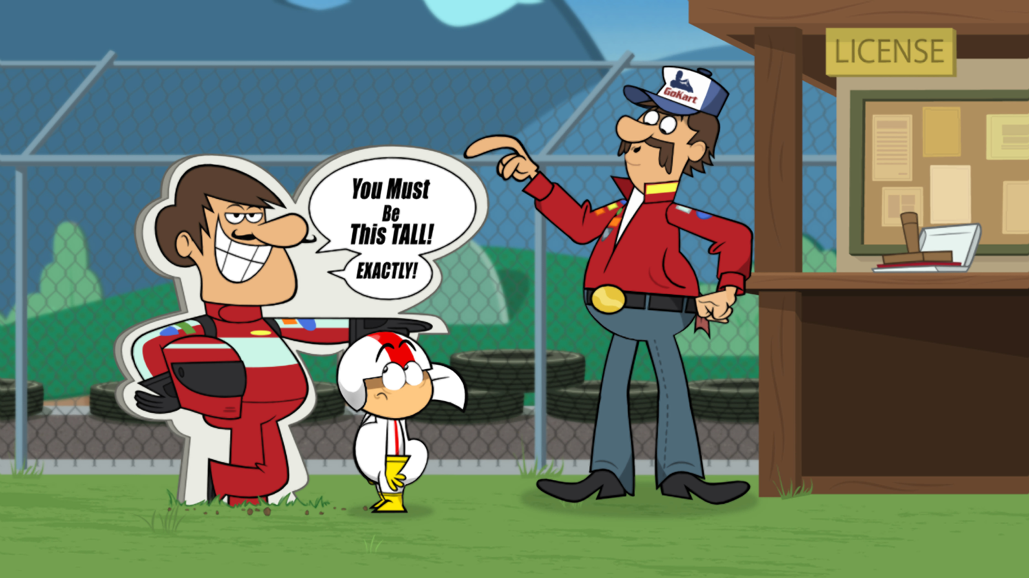 KICK BUTTOWSKI – “Kart to Kart” Ð Kick can’t wait to take a spin around the track at “Go-Go-Go-Kart World,” MellowbrookÕs go-kart track owned by former champion racer Eddie Clutch (voiced by Nascar’s Carl Edwards). But when Gordie Gibble buys the track, he makes his first order of business to ban the Buttowskis. This episode of “Kick Buttowski Ð Suburban Daredevil” airs SATURDAY, AUGUST 6 (8:30 a.m.-9:00 a.m., ET/PT) on Disney XD. (DISNEY XD)