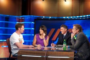 September 14, 2011 – Bristol, CT – Studio E: Having just made the Chase for the Sprint Cup (L to R) NASCAR Driver Dale Earnhardt Jr. with Dana Jacobson, Jay Crawford and Skip Bayless.