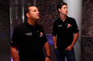 Greg Zipadelli and Joey Logano check out a display at The Hall at Patriot Place detailing the New England Patriots’ Super Bowl wins