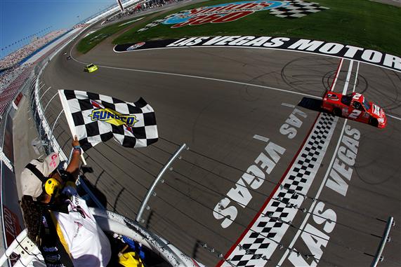 during the NASCAR Camping World Truck Series Smith’s 350 at Las Vegas Motor Speedway on October 15, 2011 in Las Vegas, Nevada.