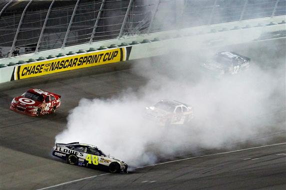 during the NASCAR Sprint Cup Series Ford 400 at Homestead-Miami Speedway on November 20, 2011 in Homestead, Florida.