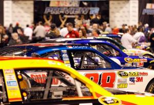 CHARLOTTE, NC – JANUARY 21: Race cars are lined up for fans to see during the NASCAR Preview Presented by Sprint on January 21, 2012 in Charlotte, North Carolina. (Photo by Streeter Lecka/Getty Images for NASCAR)