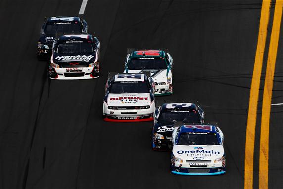 2012 Daytona Feb NNS Elliott Sadler leads