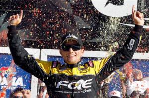 Buescher survived damage from a late-race crash to secure the win. It was a case of right place, right time.