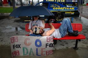 2012 Daytona Feb NSCS Prerace Fans Staying Dry