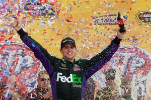 “Desperation,” Truex said wryly. “I was a little bit faster than Denny at the end, but he was running against the wall right where I needed to be, and I was just trying to gain a little bit of ground.