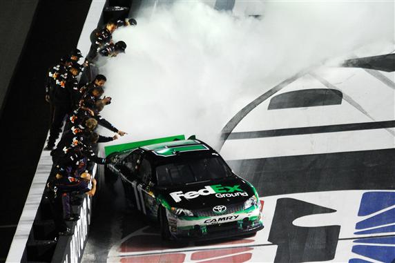 2012 Bristol2 Denny Hamlin Celebrates With Burnout