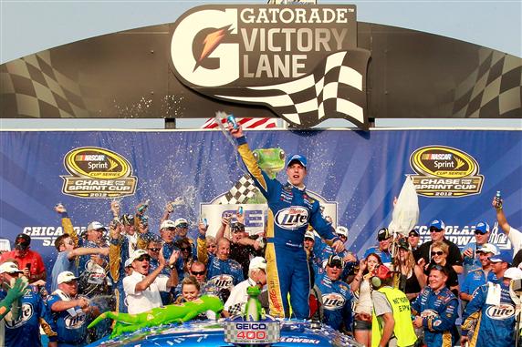 2012 Chase Race #1 from Chicagoland Brad Keselowski celebrates on September 16, 2012September 16, 2012 during the NASCAR Sprint Cup Series GEICO 400 at Chicagoland Speedway on September 16, 2012 in Joliet, Illinois. Share this: Click to email a link to a friend (Opens in new window) Email Click to print (Opens in new window) Print Click to share on Facebook (Opens in new window) Facebook Click to share on X (Opens in new window) X Click to share on Pinterest (Opens in new window) Pinterest Click to share on Reddit (Opens in new window) Reddit Like Loading...