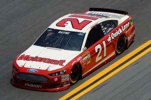DAYTONA BEACH, FL – FEBRUARY 16: Trevor Bayne, driver of the #21 Motorcraft/Quick Lane Tire & Auto Center Ford, during practice for the NASCAR Sprint Cup Series Daytona 500 at Daytona International Speedway on February 16, 2013 in Daytona Beach, Florida (Photo by Jared C. Tilton/NASCAR via Getty Images)