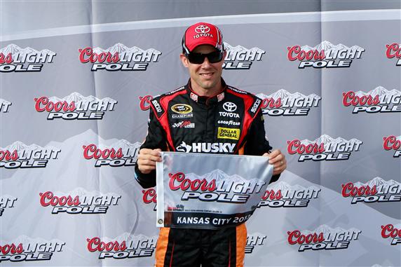 during qualifying for the NASCAR Sprint Cup Series STP 400 at Kansas Speedway on April 19, 2013 in Kansas City, Kansas.