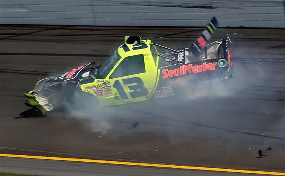 todd-bodine-crash-kansas-1-2013 on April 21, 2013April 21, 2013 during the NASCAR Camping World Truck Series SFP 250 at Kansas Speedway on April 20, 2013 in Kansas City, Kansas. Share this: Click to email a link to a friend (Opens in new window) Email Click to print (Opens in new window) Print Click to share on Facebook (Opens in new window) Facebook Click to share on X (Opens in new window) X Click to share on Pinterest (Opens in new window) Pinterest Click to share on Reddit (Opens in new window) Reddit Like Loading...