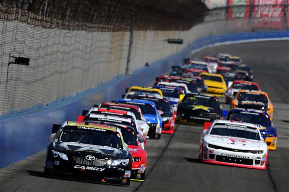 during the NASCAR Nationwide Series TREATMYCLOT.COM 300 at Auto Club Speedway on March 22, 2014 in Fontana, California.