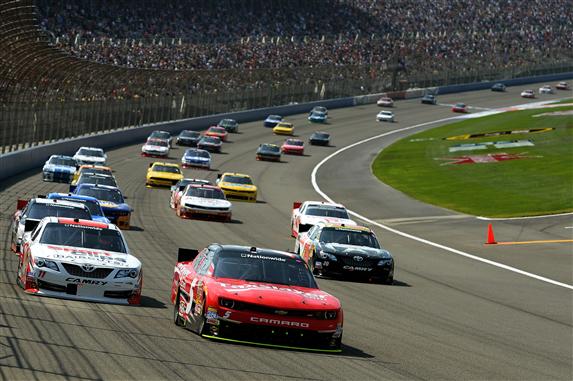 during the NASCAR Nationwide Series TREATMYCLOT.COM 300 at Auto Club Speedway on March 22, 2014 in Fontana, California.