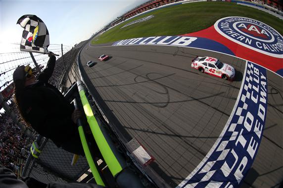 during the NASCAR Nationwide Series TREATMYCLOT.COM 300 at Auto Club Speedway on March 22, 2014 in Fontana, California.