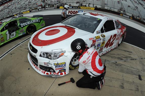 during qualifying for the NASCAR Sprint Cup Series Irwin Tools Night Race at Bristol Motor Speedway on August 22, 2014 in Bristol, Tennessee.