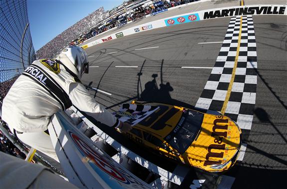 For the final restart on Lap 489, after caution had slowed the race for the eighth time when Jamie McMurray shredded a tire and lost control in Turn 2, Busch pulled away to cross the finish line .663 seconds ahead of AJ Allmendinger, who matched his career-best Sprint Cup finish on an oval track, with his previous second place coming at Martinsville in 2012.