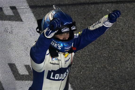 “You’re a good man, you’re a great champion, and now you’re a seven-time champion,” crew chief Chad Knaus radioed to Johnson, who grabbed the lead from Kyle Larson through Turns 1 and 2 during the first and only attempt at a two-lap overtime.