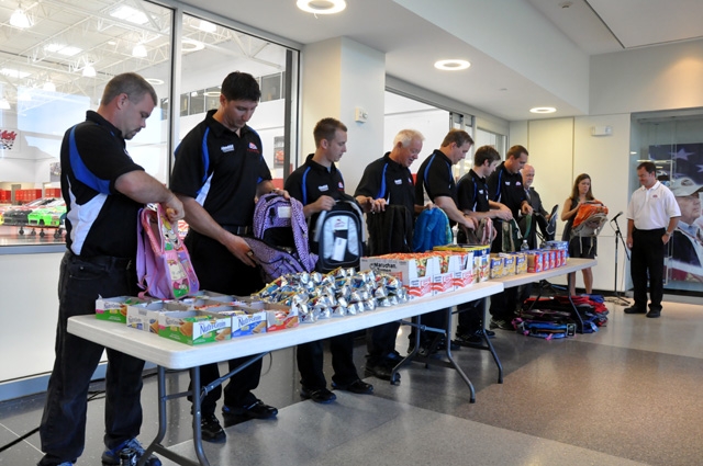 On Thursday, members of the Hendrick Motorsports team will join representatives from Farmers Insurance at Hendrick Motorsports to fill 62 backpacks that will be donated to Community Charter School in Charlotte.