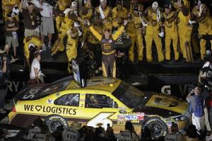 Jason Leffler ran second followed by series points leader Reed Sorenson, who also claimed a $100,000 prize as the highest finisher among four drivers eligible for Nationwide’s “Dash 4 Cash” program.