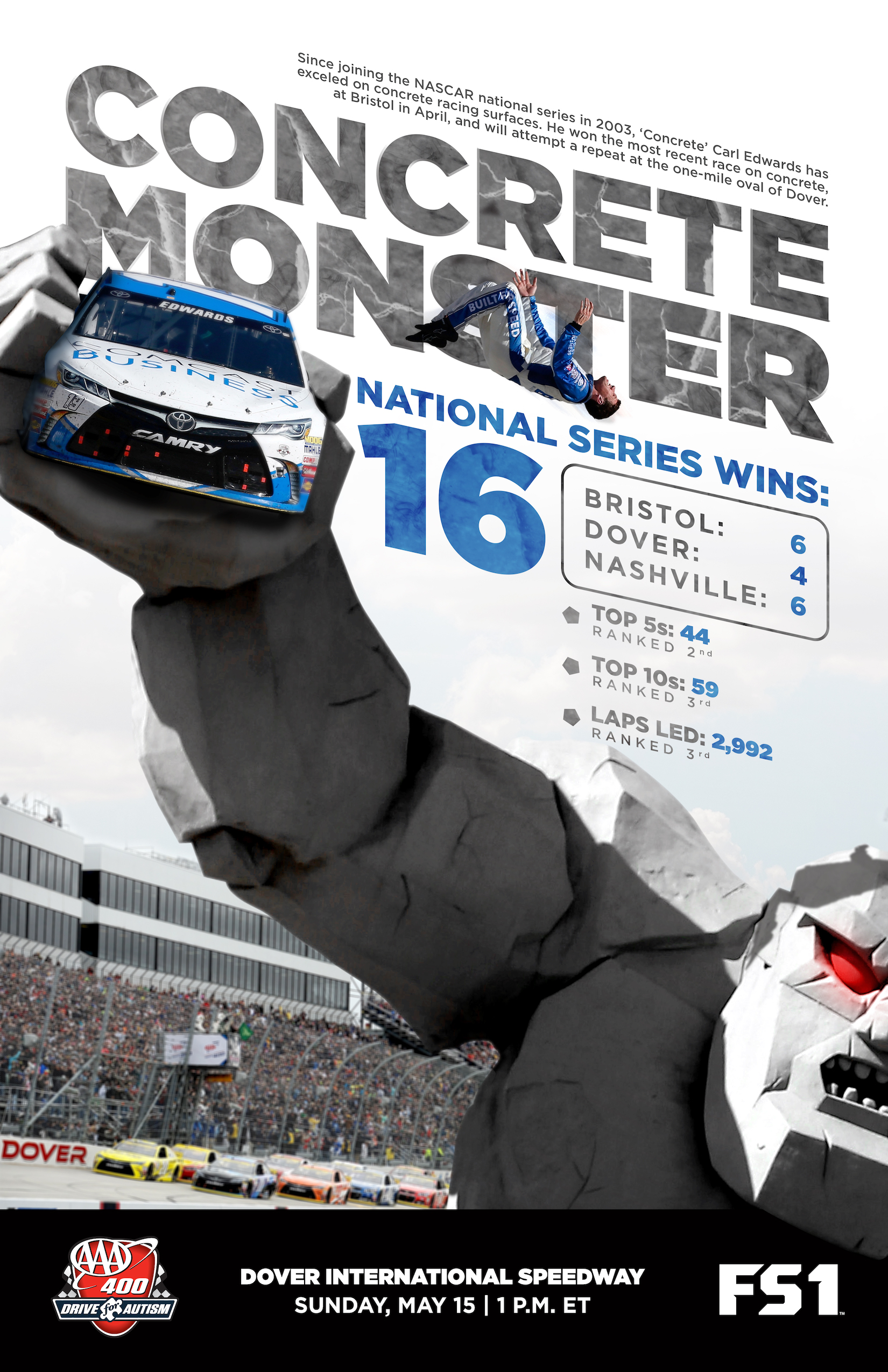 Since he began competing in NASCAR’s national series in 2003, Carl Edwards has exceled on concrete racing surfaces. The No. 19 Joe Gibbs Racing driver won the most recent race on concrete at Bristol and will attempt to follow it up with a victory at Dover.