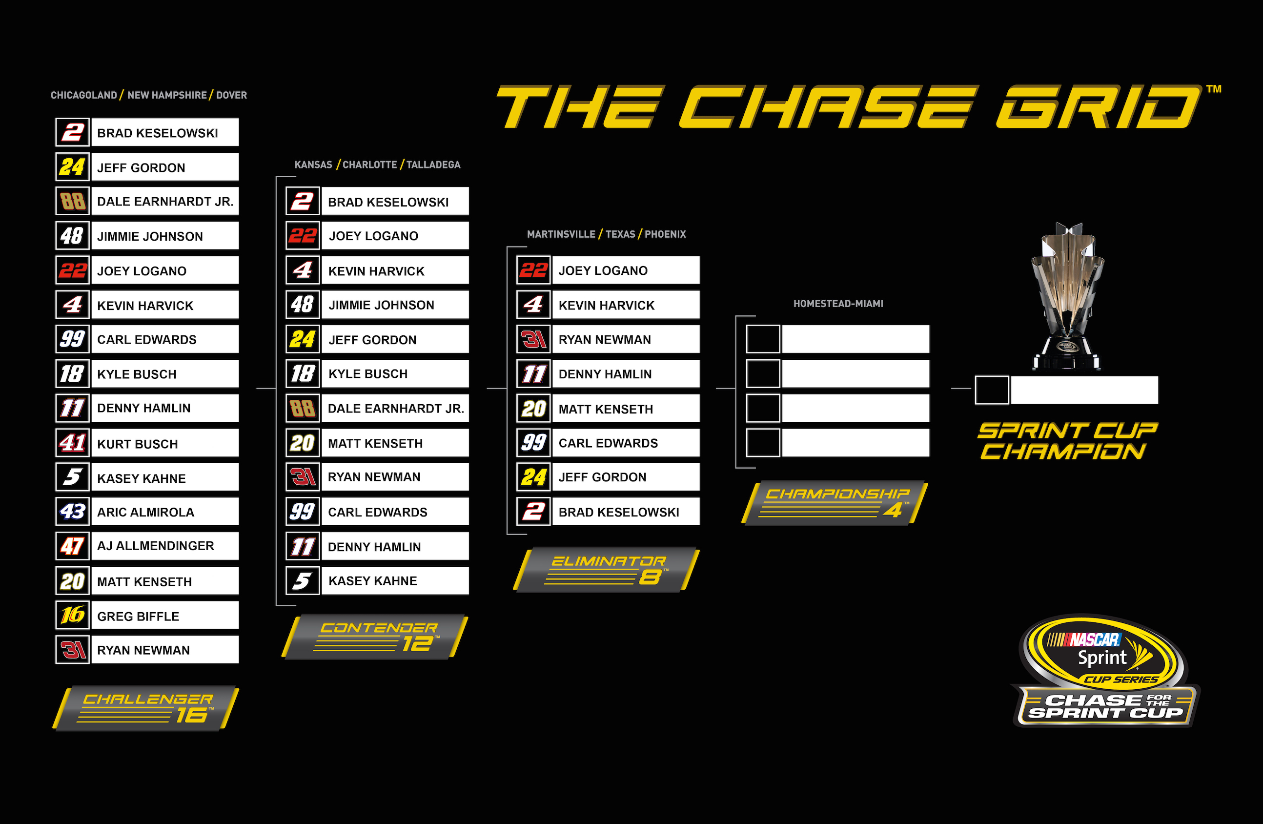 The seven-race NASCAR Camping World Truck Series Chase will begin at New Hampshire Motor Speedway on Sept. 24. It will feature eight drivers and two elimination rounds, with four drivers competing in the Championship 4 at Homestead-Miami Speedway. A win in the first 16 races all but guarantees a driver entry into the NASCAR Camping World Truck Series Chase, provided that the driver is in the Top 30 in points and has attempted to qualify for each race.