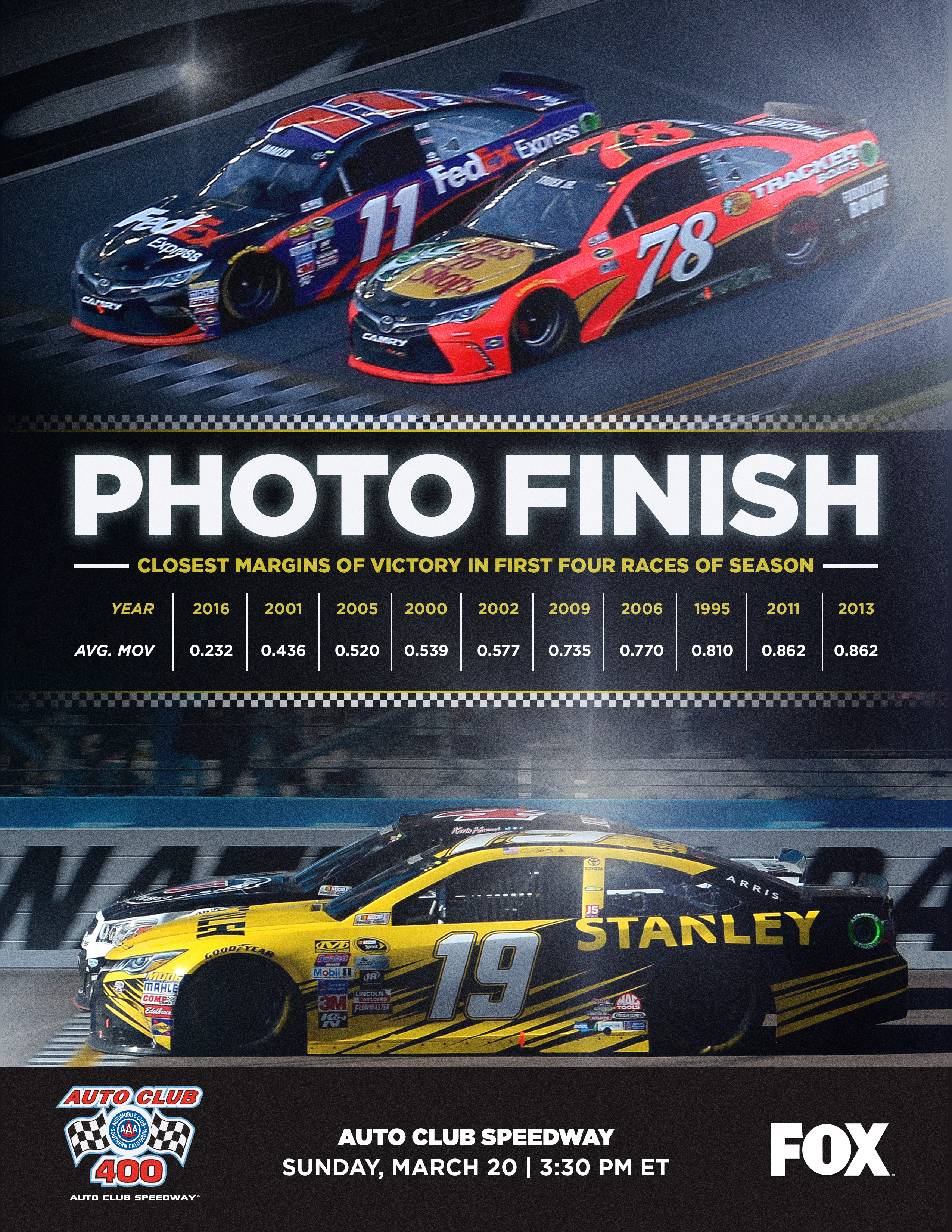 A number of interesting numbers highlight the first five races of the 2016 NASCAR Sprint Cup Series season, capped by the 51 green flag passes for the lead at Auto Club Speedway, a high at the two-mile track since the inception of loop data in 2005.