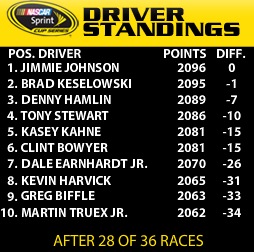 1. Matt Kenseth (2,183 points) +/-0 positions