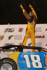 ROSSBURG, Ohio (June 6, 2012) – After knocking on the door to victory lane countless times in his five previous runs in the Prelude To The Dream at Eldora Speedway in Rossburg, Ohio, Kyle Busch finally broke through Wednesday night to score his first win in the all-star dirt Late Model race benefiting Feed The Children.