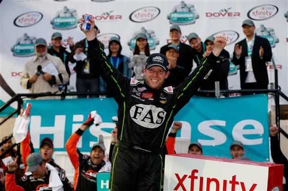 DOVER, Del.—Regan Smith charged from fourth to first during a restart on Lap 121 and stayed there for the rest of the Hisense 200 NASCAR XFINITY Series race at Dover International Speedway Saturday, posting his second victory of the season and working his way back into championship contention.
